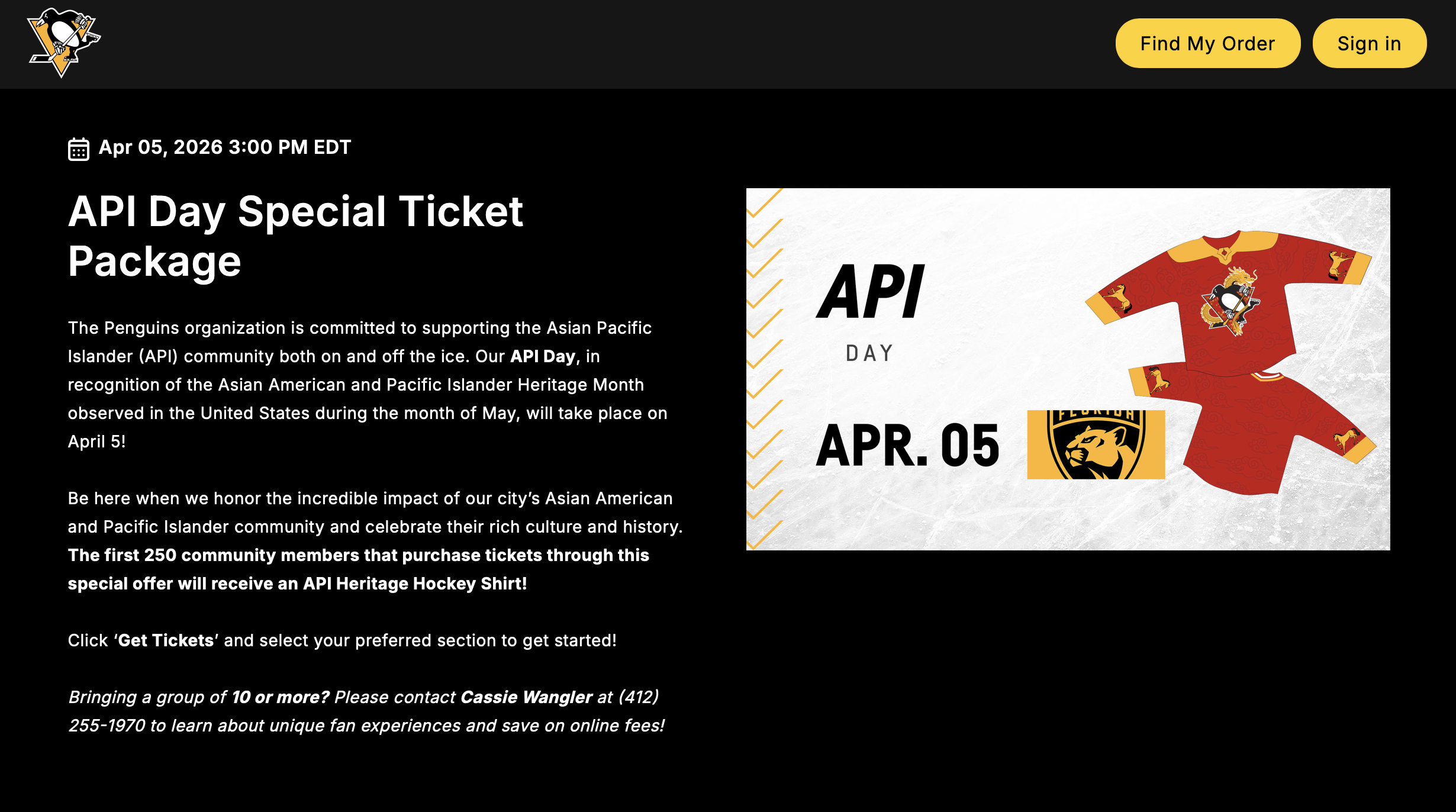 I designed a special ticket package hockey shirt for the Pittsburgh Penguins. The hockey shirt was for the Asian Pacific Islander heritage game against the Florida Panthers.